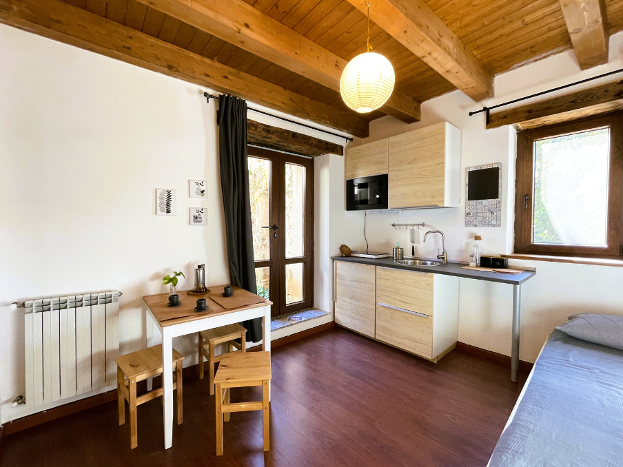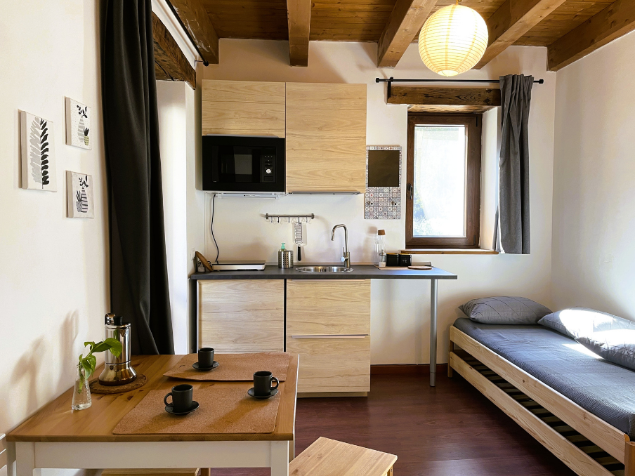 L'Appartamento Fico è il rifugio ideale per le famiglie che desiderano immergersi nella natura! Questo appartamento accogliente dispone di una camera da letto con un letto matrimoniale e un letto singolo, un soggiorno con angolo cottura e un bagno privato. Ideale per una famiglia con bambini piccoli o per una coppia che desidera privacy e la comodità di una cucina propria. Situato al piano terra del borgo di Guarneri, all’ombra del nostro fico, offre un ambiente fresco e rilassante. Gli arredi sono semplici ma curati, i prodotti da bagno sono sostenibili e l'energia elettrica proviene da fonti rinnovabili, per un soggiorno che rispetta e abbraccia la natura.